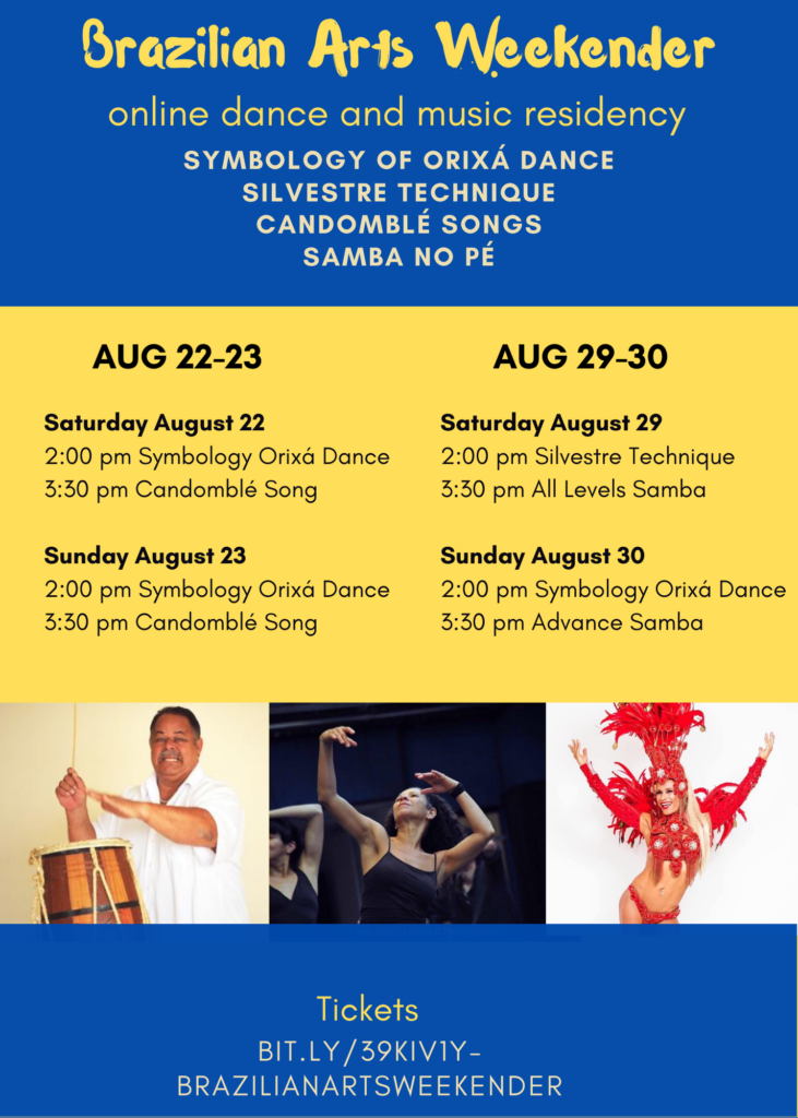 DENVER & BOULDER, CO It is with great gratitude to announce our first Brazilian Arts Weekender! Join us for dance and music workshops with our dear master teachers from Brazil! This is an opportunity to come together to support artists who have lost work due to Co-Vid 19. Please share with anyone who may be interested. No experience needed.